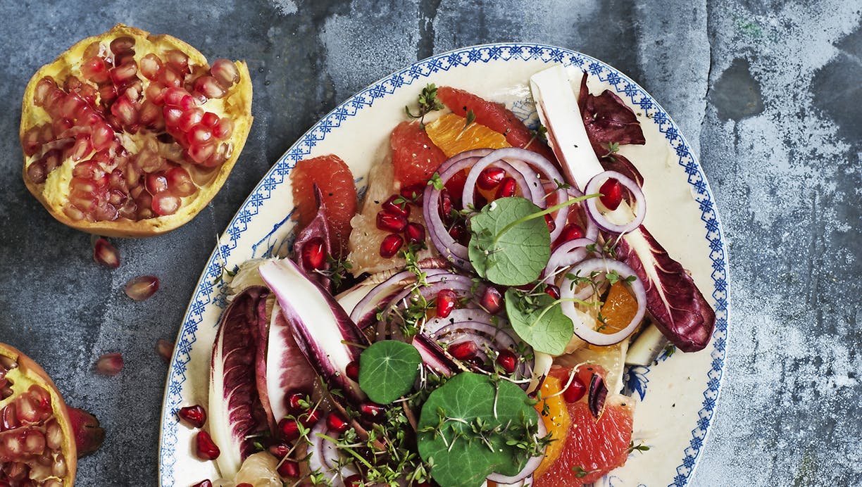 Denne salat er lidt anderledes med dens syrlige smag - men den passer perfekt til resten af sommermaden. Her får du opskriften på syrlig citrussalat med granatæblekerner.