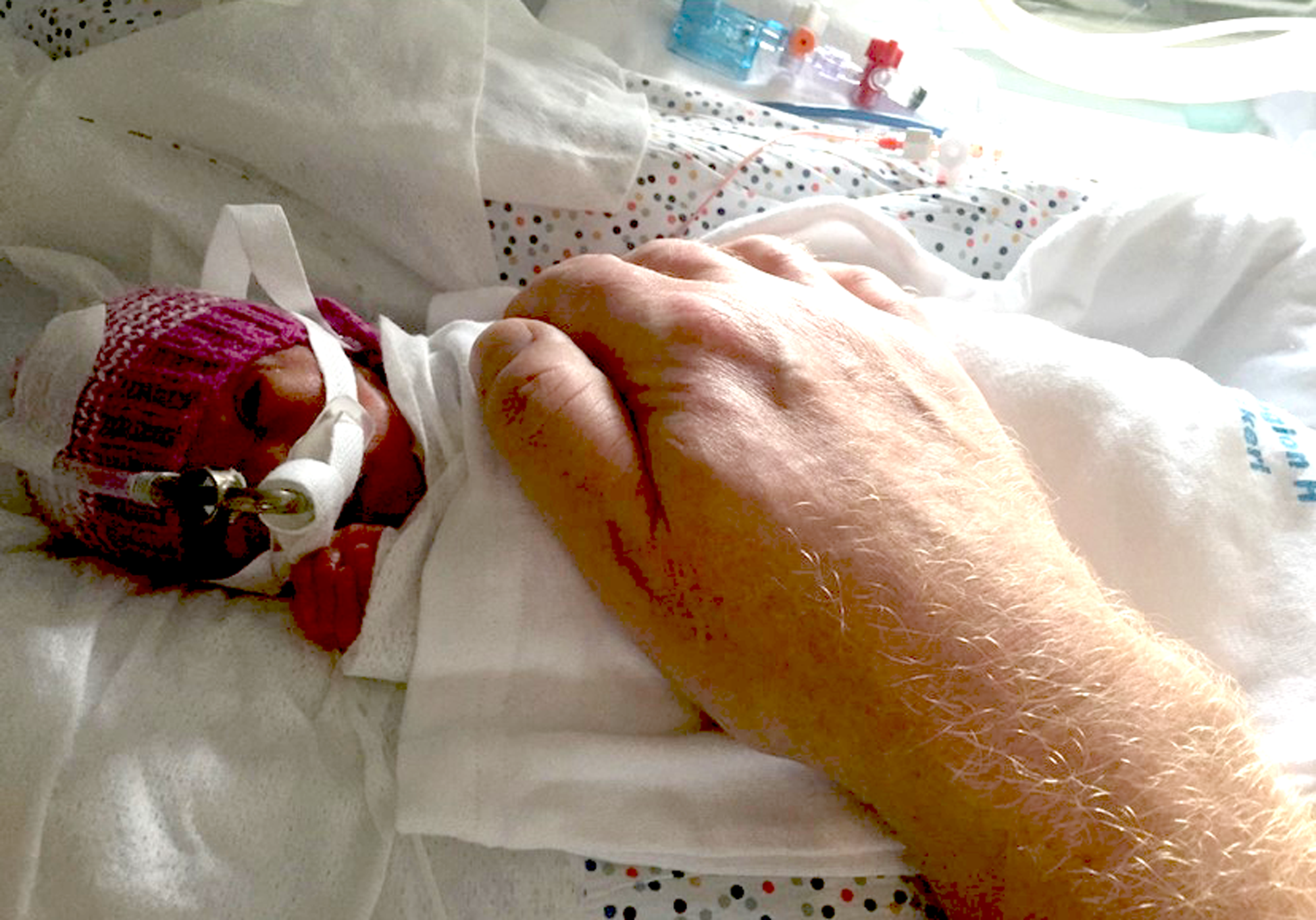 Jeg havde lige født vores pige tre og en halv måned for tidligt, og vi var efterfølgende indlagt i fire måneder, hvor vores datter var i livsfare dagligt i tre af de fire måneder.