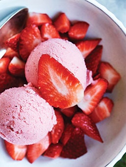 Sådan laver du hjemmelavet is med jordbær og hyldeblomst