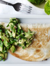 Servér chimichangas med avokadosalsa og sprød hjertesalat med limesaft og salt på.