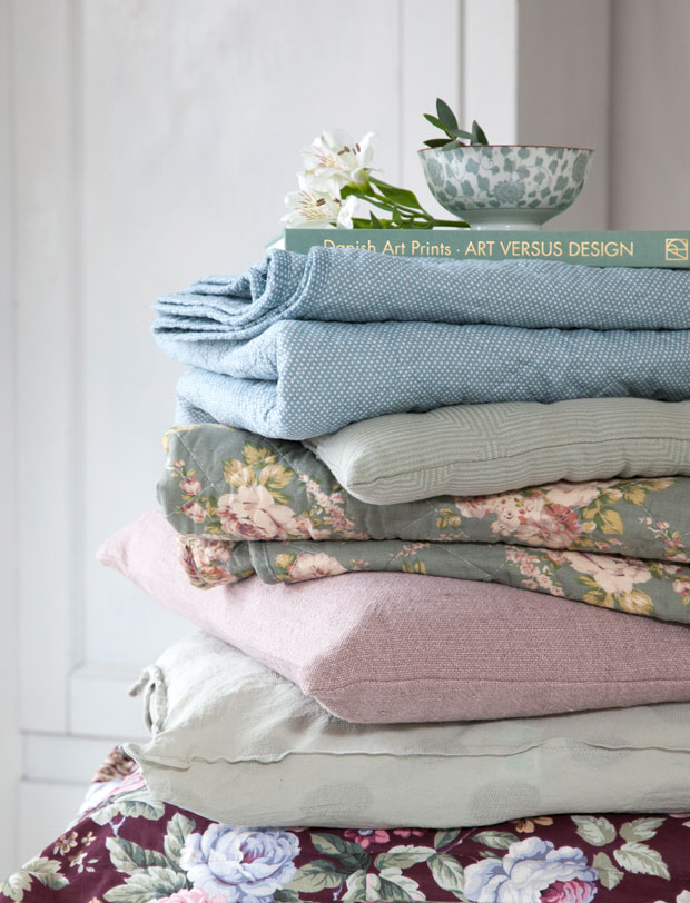 Tricket er at smutte enkelte gamle ting ind imellem de nye, men at have farver og former i tankerne samtidig. For eksempel passer ny keramik og gammelt porcelæn fint sammen hvis begge dele er i pastelfarver. Og blomstrede vattæpper klæder enkle, ensfarvede puder fint, så længe der er en farve, der går igen.