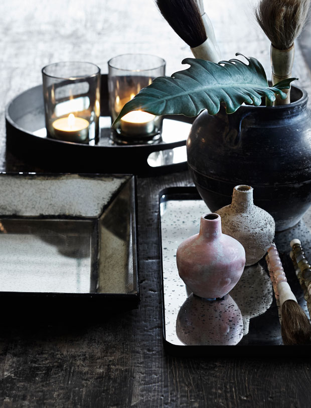 Spejle er geniale til at få små rum til at virke større, både fordi de reflekterer lyset, og fordi de skaber et optisk bedrag, så det virker som om, rummet fortsætter. Kig efter små gamle spejle at hænge op imellem billederne på væggen eller indret med bakker og små borde med blanke spejlflader.
