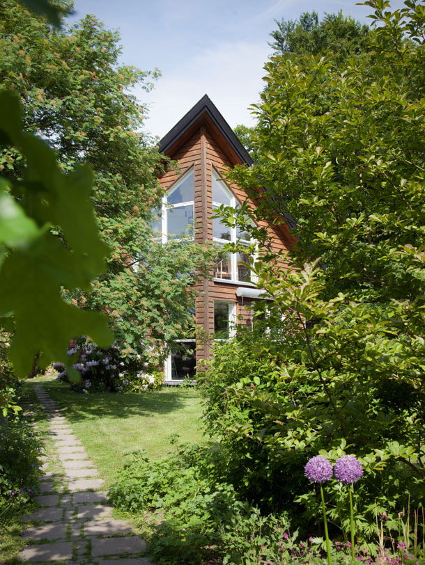 Hvem Laura Bergsøe, 45 år, møbelsnedker i Laura Bergsøe Møbelsnedkeri, sammen med sine to sønner, Buster på 14 og Bob på 12 år, samt hunden Luka. Følg Lauras arbejde på Instagram @laurabergsoe Hvad 156 m² stort selvbygger-træhus i 1½ plan fra 2003. Hvor Hørsholm.