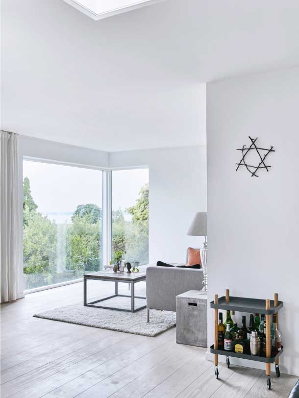 Hvem? Chantall Scott, 46 år, indehaver af virksomhederne Vibeke Scott og flagfabrikken Langkilde & Søn, og Niels Thybo Johansen, 49 år, CTO for Sigma Designs, og deres tre børn, Hannah, 11 år, Aksel, 13 år, og Eva, 15 år. Hvad? Villa på 240 m² fra 1953. Hvor? I Virum ved Furesøen.
