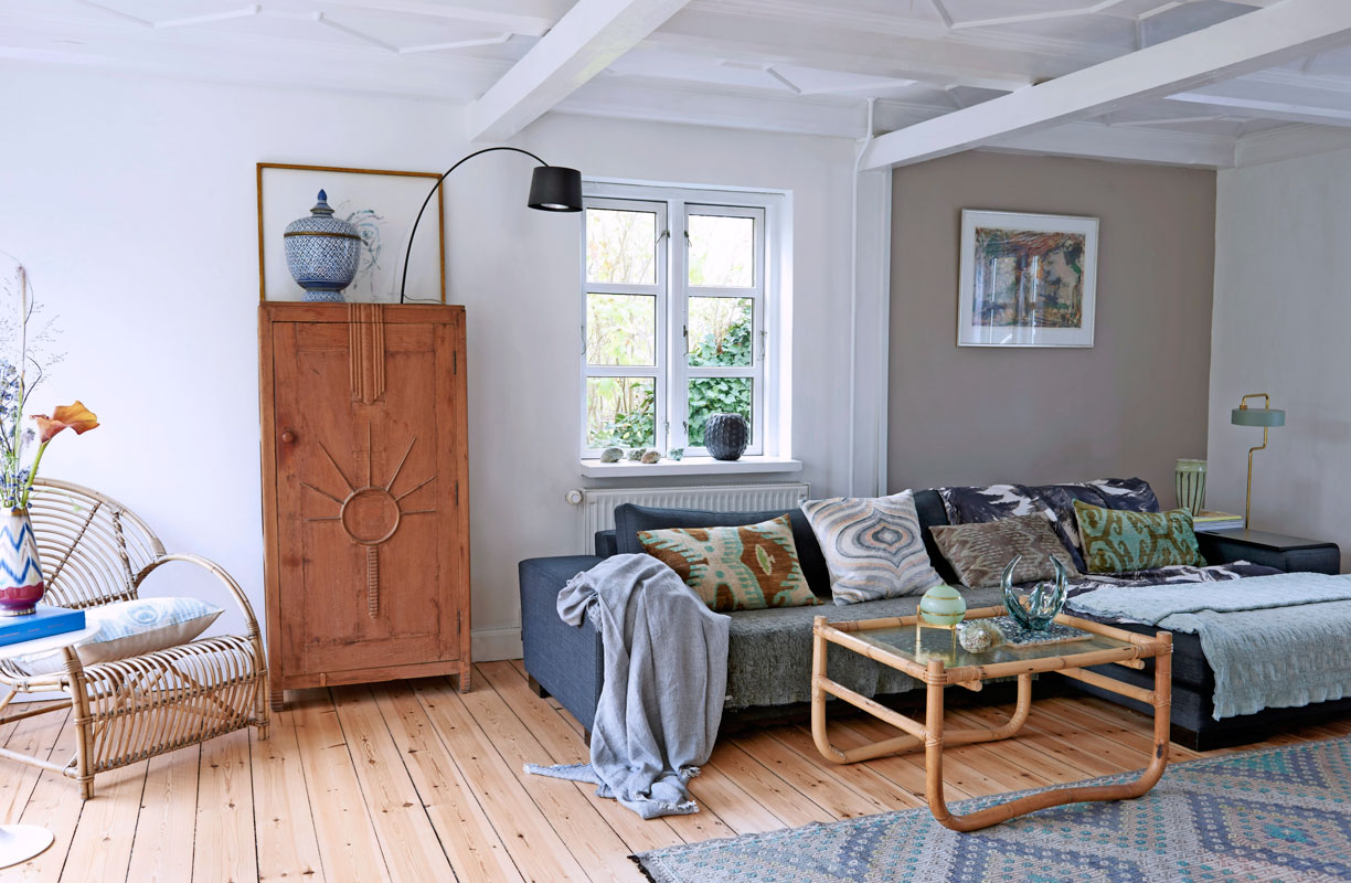 Hos vintagestylist Dorthe Ziegler Topp er der ikke mange regler for, hvad der kan sættes sammen. Derfor smelter moderne lamper og stole finurligt sammen med antikke kinesiske billeder, bornholmsk keramik, gamle glasskåle, tyrkiske vintagepuder og indonesiske rattanmøbler.