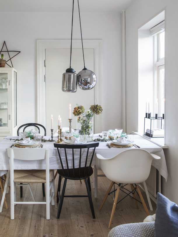 3 tip til Emilies stil - Gå efter en enkel og afslappet indretning. Placér f.eks. forskellige typer stole rundt om spisebordet, eller saml lysestager af forskellig højde.