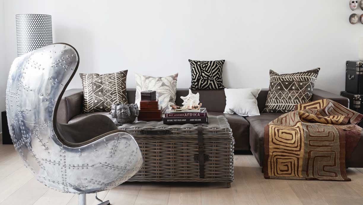 - Gå efter puder og tæpper med grafiske og afrikansk inspirerede print.