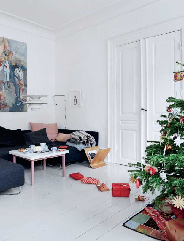 Hjemme hos familien Rosén er indretningen præget af klassisk design. Julepynten derimod er anderledes legende, kulørt og skæv. Mixet giver en tilbagelænet og afslappet stemning med plads til både store og små.