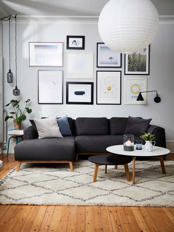 - Følg årstiderne og skift puder og tæpper ud, alt efter om det er vinter eller sommer. Jeg tænder stearinlys og lægger bløde skind på møblerne i den kolde årstid, mens jeg om foråret fjerner mange ting, så her bliver lyst og åbent.