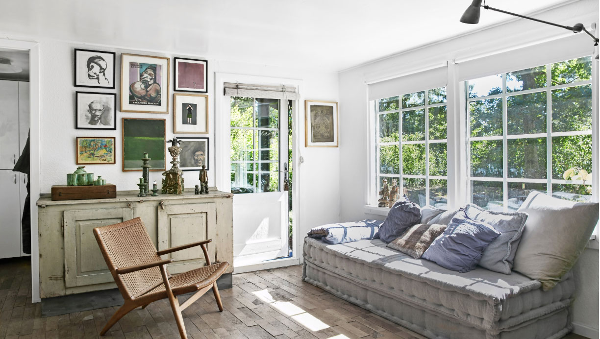 PÅ BESØG HOS Stine Christa Engel Busk, ejer og grundlægger af Munderings-kompagniet, og Henrik Busk, designansvarlig for Jack & Jones Vintage, og deres to børn, Nuka og Savannah. Familiens feriehus på 49 m2 er indrettet med et stort opholdsrum og to værelser. Huset er bygget i 1980’erne og ligger på en stor naturgrund i Nordsjælland. KOM MED INDENFOR I SOMMERHUSET I GALLERIET HERUNDER