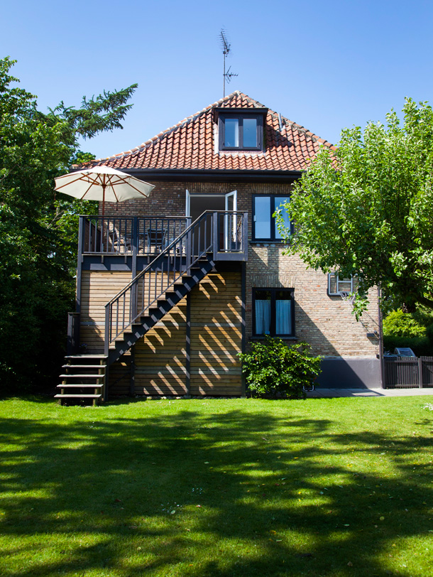 Da Heidi, hendes mand Lars og deres to børn fik mulighed for at bytte deres lejlighed ud med en gammel murermestervilla i Vanløse, var de slet ikke i tvivl. Her ville de være tæt på Københavns centrum. Men samtidig ville de kunne nyde naturens dufte, farver og lyde på nært hold, for villaen ligger med en skøn udsigt over Damhussøen, og der hører en dejlig gammel have til huset. Det betyder meget for Heidi at bo i rolige omgivelser med naturen tæt på. Sådan lader hun bedst op i fritiden. Og det er også naturen, der giver hende inspiration til sit arbejde. Heidi ejer en skønhedsklinik og arbejder med lutter naturlige produkter. Indenfor har hun indrettet de lyse rum enkelt med øje for kvalitet. Det er ikke til at se, at det var lidt svært at indrette rummene, da familien flyttede ind. I deres tidligere hjem var rummene store, mens der i murermestervillaen er flere rum, der til gengæld ikke er så store.