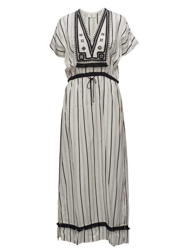 Maxikjolen har et eksklusivt og delikat udtryk, som gør den særdeles velegnet til festlige lejligheder, hvor den går smukt sammen med et par lange øreringe og opsat hår. Men du kan også sagtens bruge den til hverdag, hvis du vælger en mere casual en af slagsen. Man kan nok kalde den sommerens rareste og mest anvendelige kjole.
