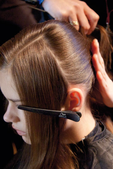 For at få en stram fletning, som holder, skal du bruge en gummivoks med glans. Det holder alle de små og uregerlige hår på plads uden at gøre fletningen stiv. Spray håret med en shimmer-lak, så det får ekstra glans.