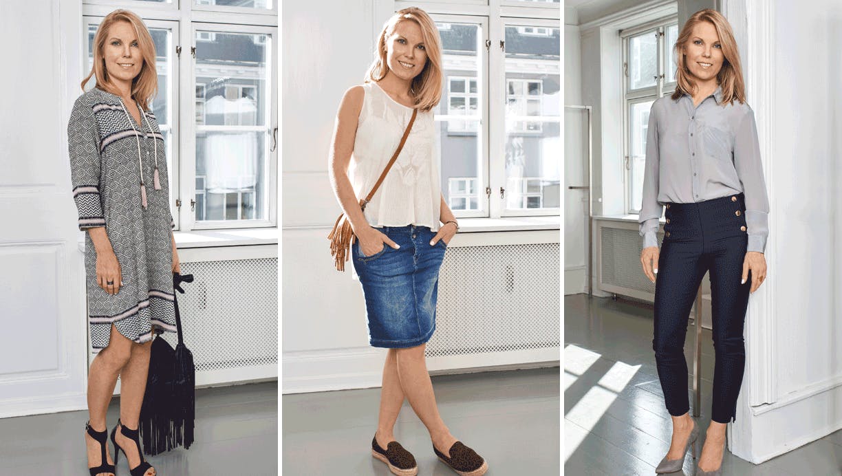 34-årige Christa har travlt til hverdag med et krævende psykologi-studie og med at være mor, så hun vælger ofte den lette løsning med jeans og sorte eller hvide toppe. FEMINAs stylist Birgit Axelsen viser Christa, hvordan hun kan bruge bløde bukser, nederdel og kjole til hverdag.